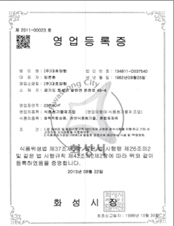 영업등록증 (식품제조가공품) 페이지 정보 작성자 최고관리자 댓글 0건 조회 245회 작성일 21-06-30 12:00 본문 영업등록증 (식품제조가공품) 목록 이전글영업등록증 (식품첨가물제조업) 21.06.30