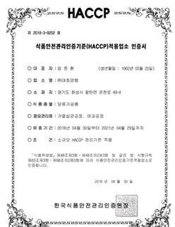 HACCP 인증서 (당류가공품) 페이지 정보 작성자 최고관리자 댓글 0건 조회 358회 작성일 21-06-30 12:03 본문 HACCP 인증서 (당류가공품) 목록 다음글HACCP 인증서 (기타코코아가공품) 21.06.30
